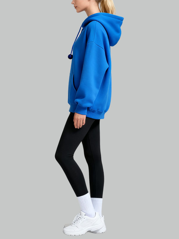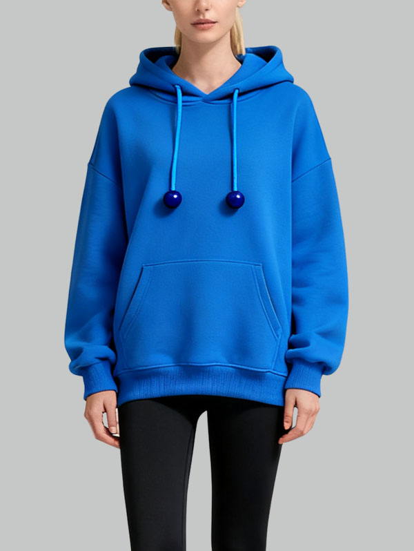 Bright Blue Casual Pullover Hoodie Drawstring Hood