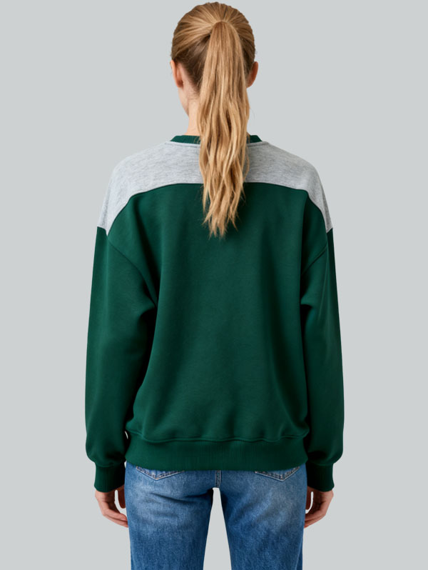 Dark Green & Grey Color Block Sweatshirt Raglan Sleeve Relaxed Fit Top