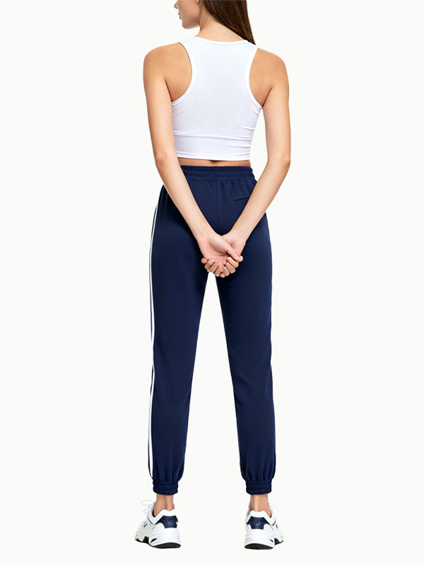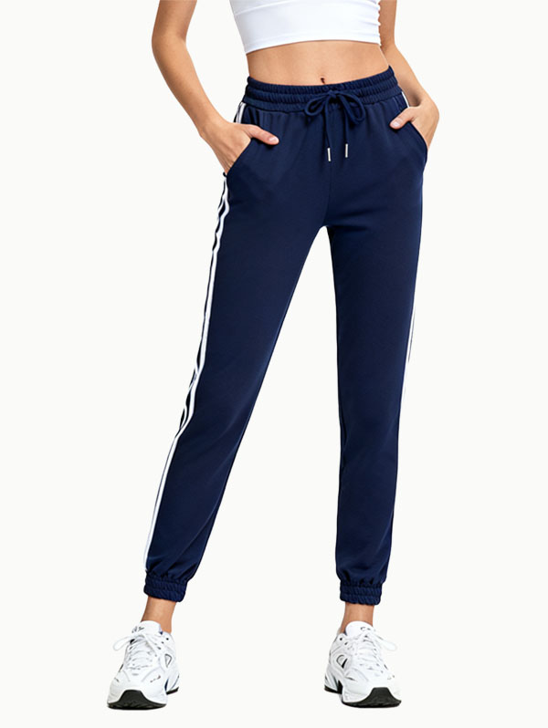 Navy Blue Side Stripe Athletic Pants Drawstring Waist Sporty Fit Bottoms​