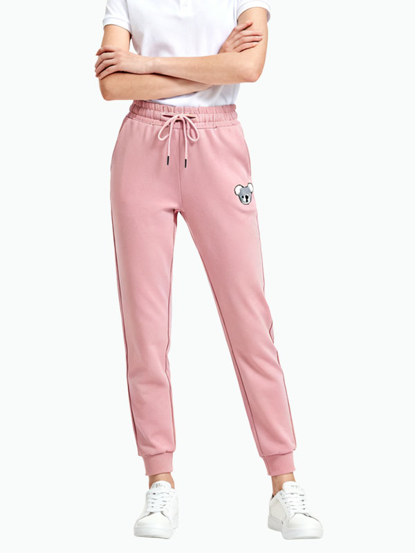Pink Bear Print Joggers Adjustable Drawstring Waist Cuffed Ankle Casual Pants