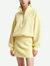 For a relaxed loungewear look, pair it with comfortable slippers or sandals. The top and skirt can also be worn separately. Pair a loose-fitting top with leggings or jeans for a casual look. The high-waisted skirt pairs well with a fitted tank top or cropped T-shirt.