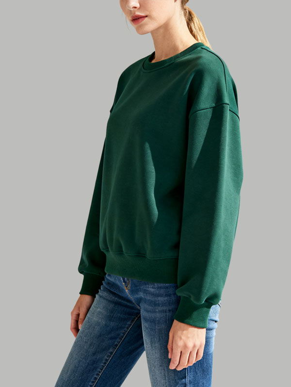 Women’s Dark Green Ribbed Cuff Pullover Soft Casual Top with Classic Fit